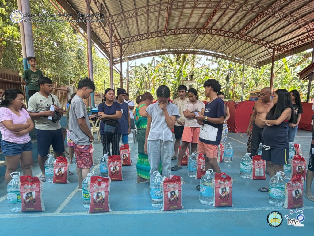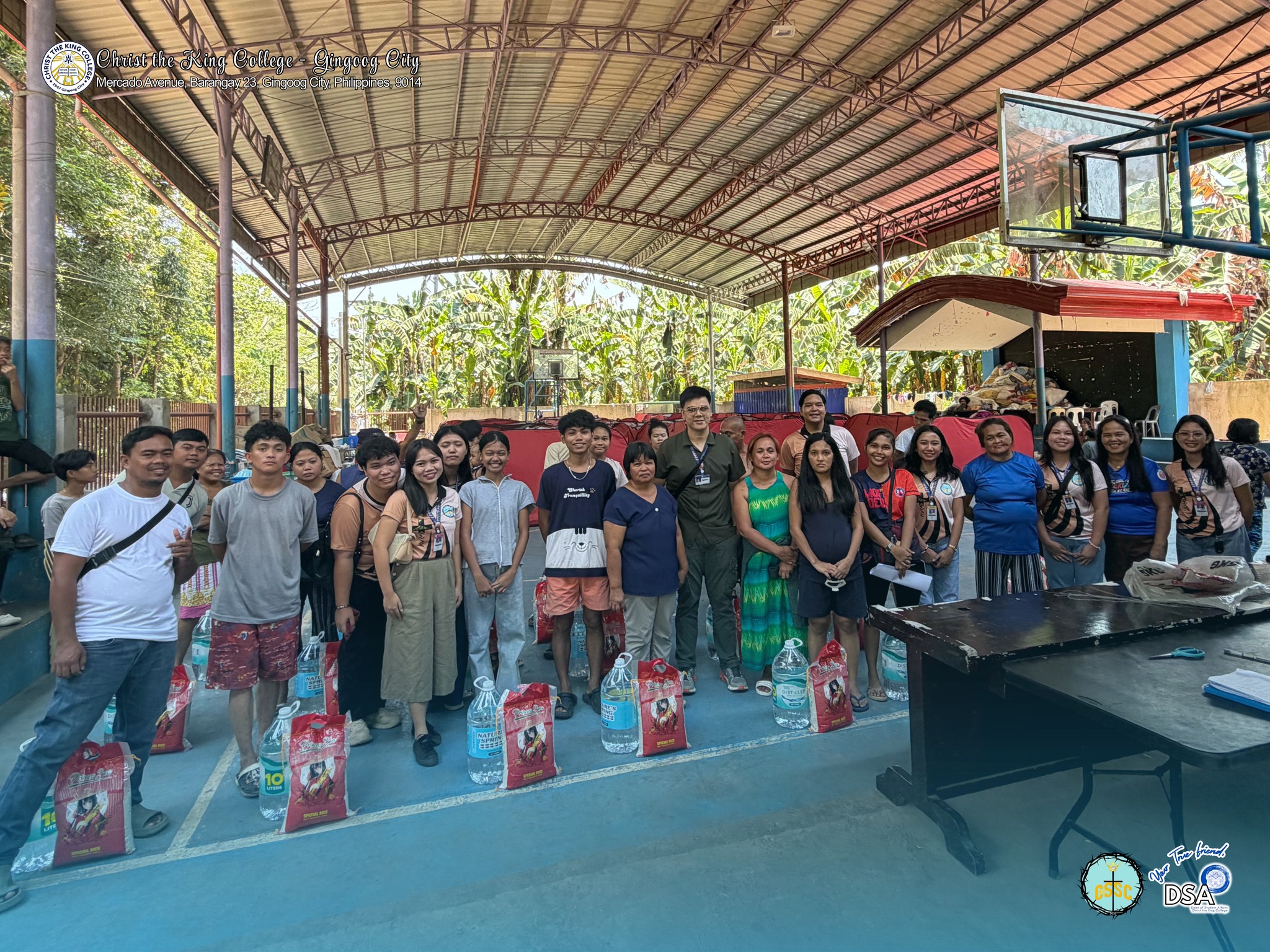 Christ the King College extended assistance to 25 families affected by a recent fire incident in Barangay 23, Gingoog City, as part of its continuing commitment to community service and compassionate outreach. In response to the victims’ urgent needs, the school distributed 10 liters of water and 5 kilograms of rice to each affected family. Also given were used clothes and other essential items generously collected from the Basic Education Department and the Higher Education Department, reflecting the united effort of the CKC community to bring immediate relief and comfort to those in need. The outreach team was warmly accommodated by the Brgy. Captain, Hon. Amelita Paje, whose support helped facilitate the activity in the community.