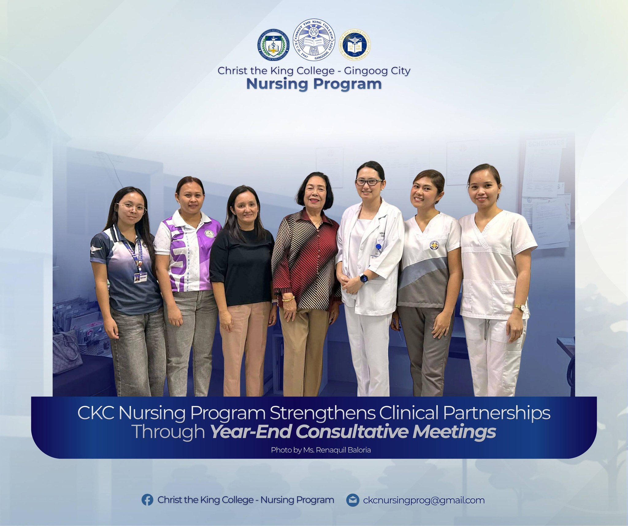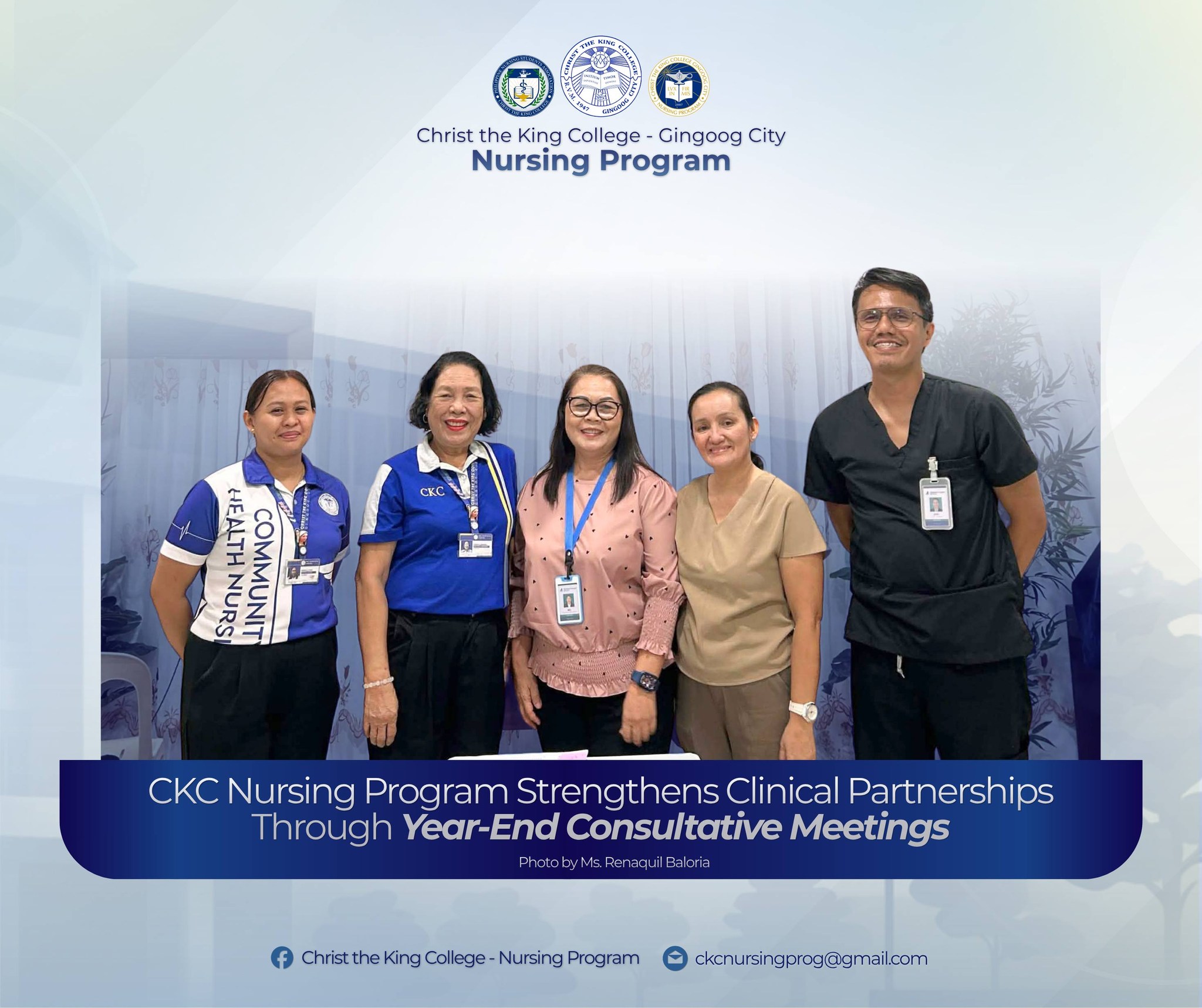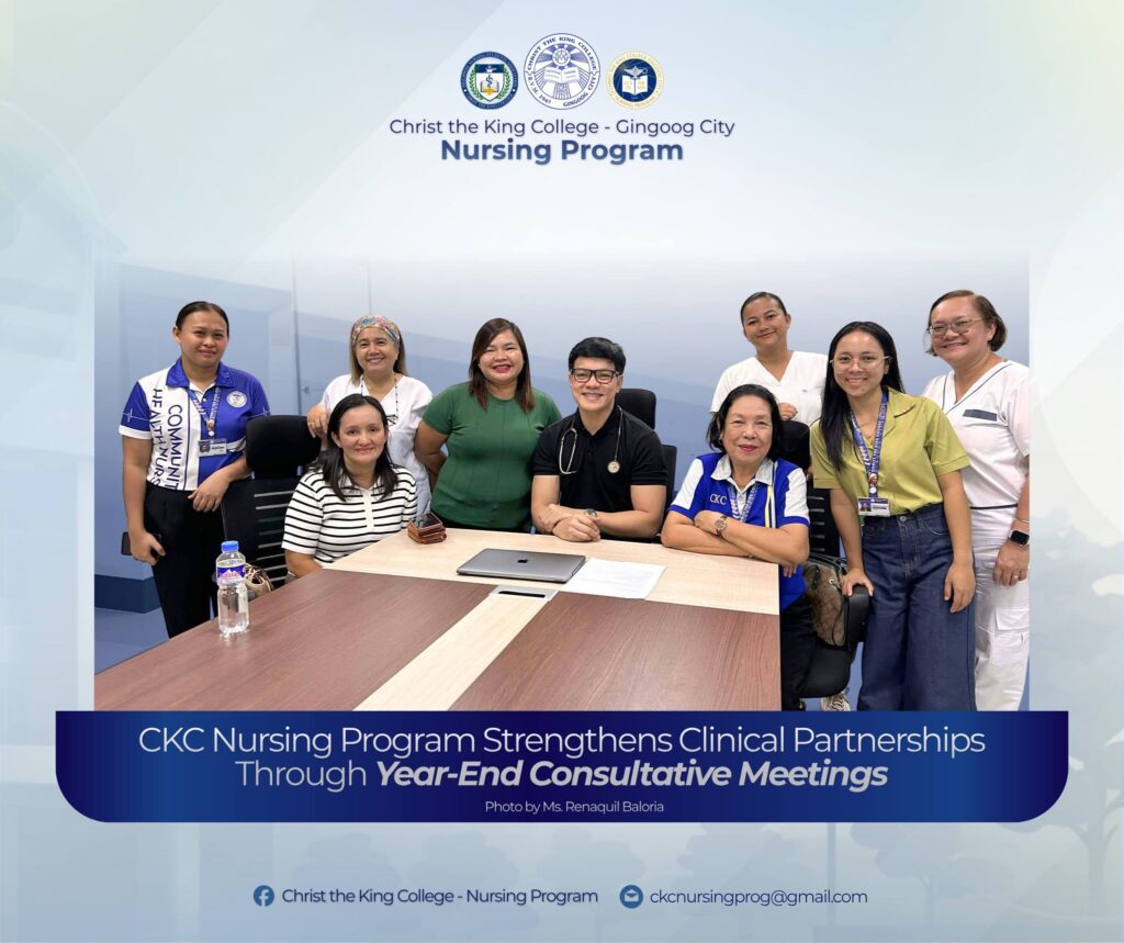 The Christ the King College (CKC) Nursing Program, led by Dean Mrs. Norma E. Simborio and RLE Coordinator Mrs. Merle R. Hurtado, successfully held its Year-End Consultative Meetings with Chief Nurses from its affiliated hospitals on April 13 and 14, 2026.