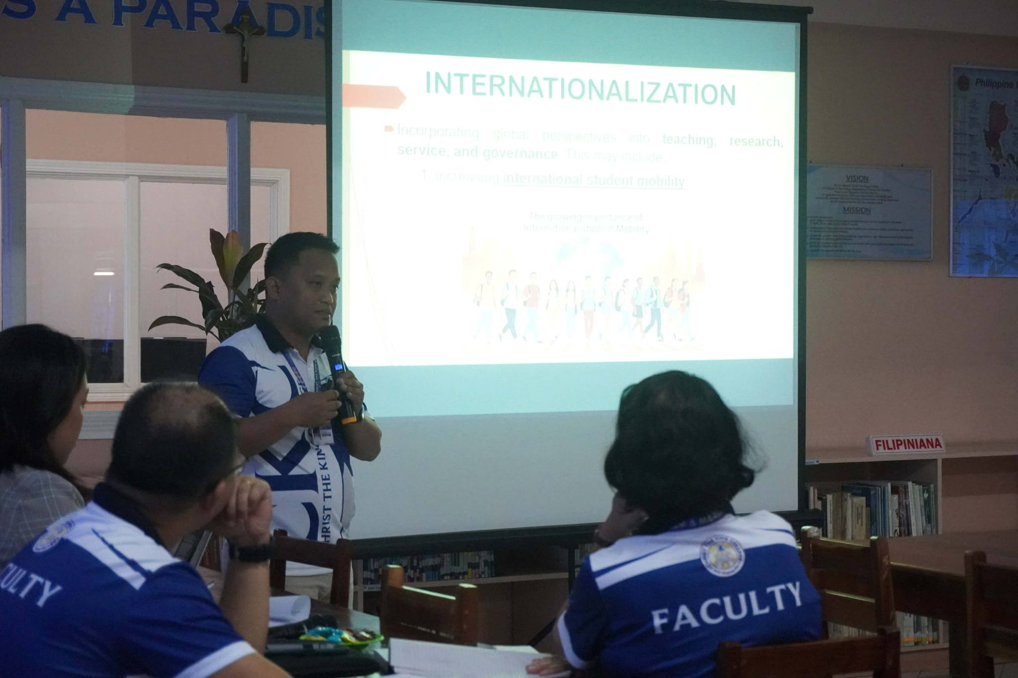 The Research and Planning Coordinator, Mr. Paul John P. Panganiban, introduced the proposal for the internationalization, Sekonic Answer Sheets and Science Research Associates (SRA) materials. This initiative aims to strengthen and enhance the quality of education offered by the institution and to expand its scope of academic partnerships.